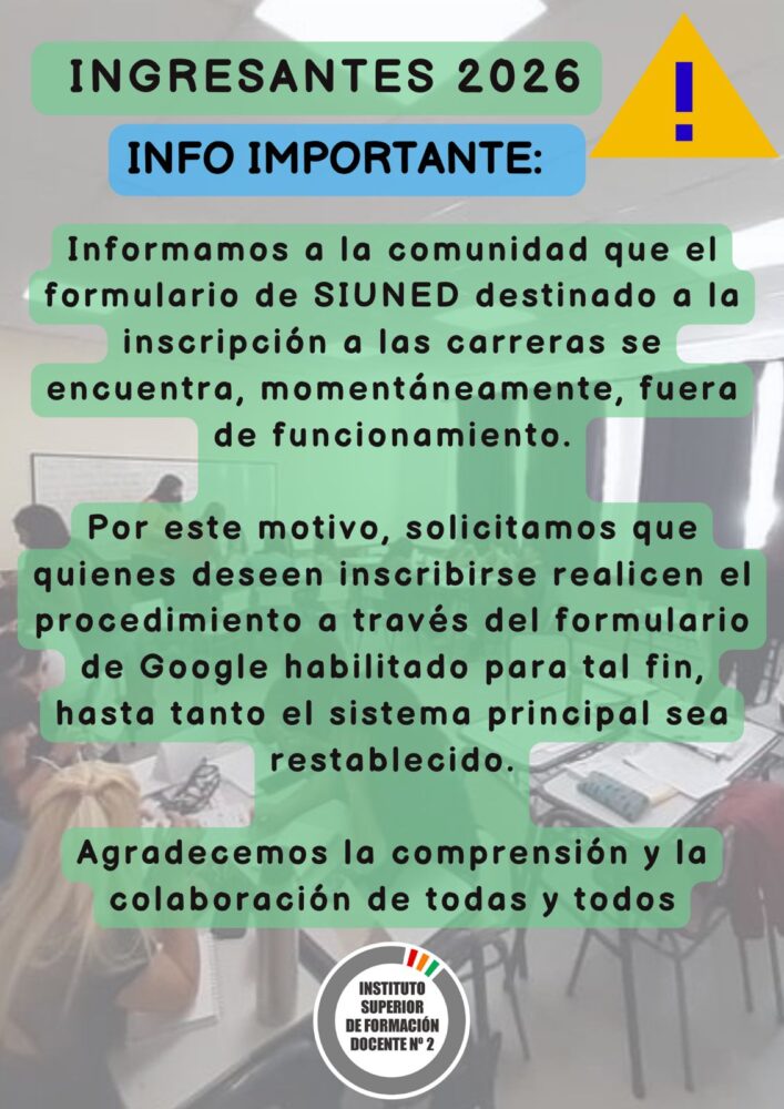 ATENCIÓN comunidad educativa del ISFD N°2.